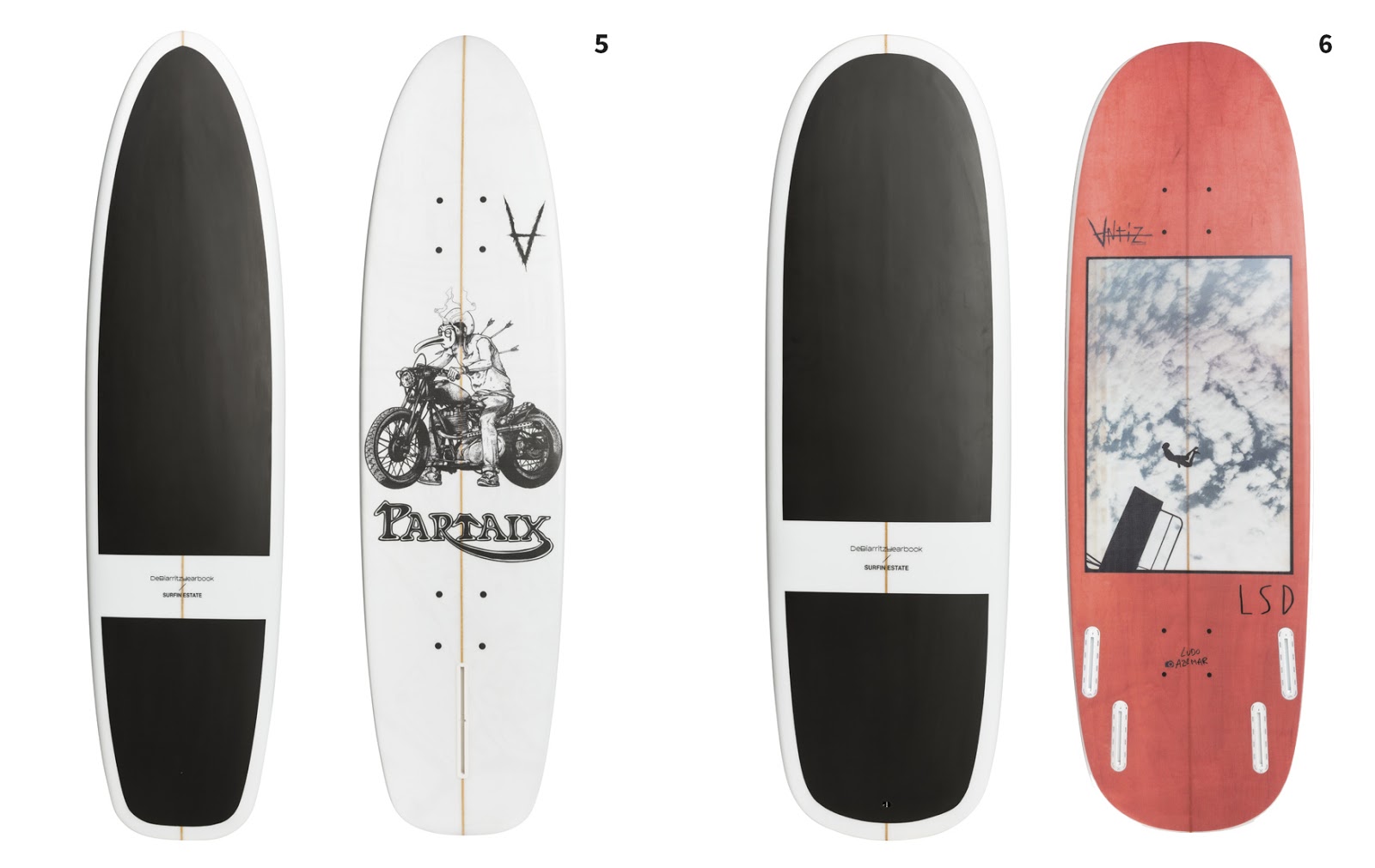 For the launch of De Biarritz Yearbook, we imagined unparalleled surfboards inspired by iconic skateboards. The collaboration is completed with a surfboard and a design created by Nicolas Malinowsky from Atelier Malinoswky.